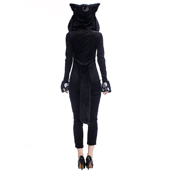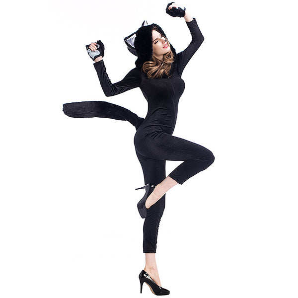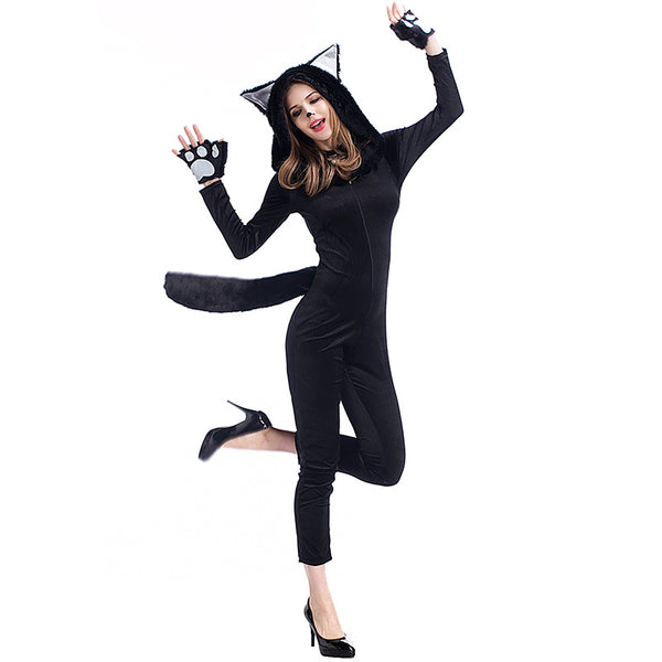 Adult Women Black Cat Halloween Cosplay Costume With Hat