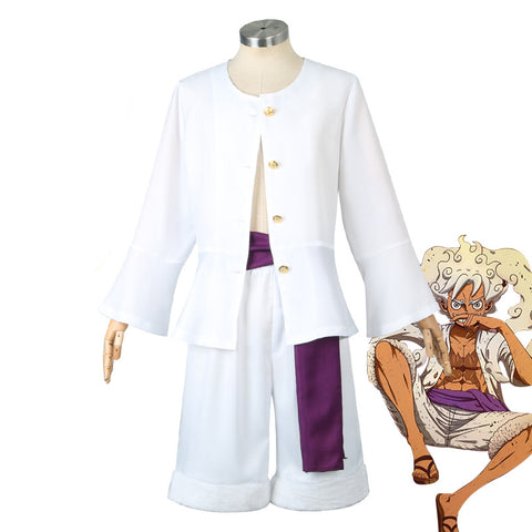 Anime One Piece Monkey D. Luffy Gear 5 Costume White Halloween Cosplay Costume for Kids and Adults