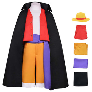 Kids/ Adults One Piece Monkey D. Luffy Wano Country Arc Outfit With Hat and Cloak Cosplay Costume Full Set