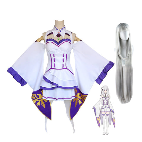 Anime Re:Zero − Starting Life in Another World Emilia Costume Dress Outfit With Wigs Full Set Halloween Costume