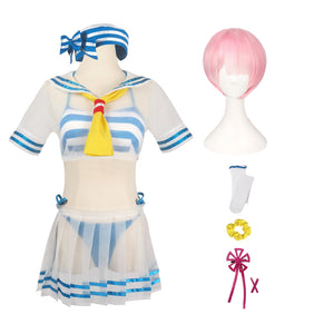 Anime Re:Zero − Starting Life in Another World Ram Rem Sailor Suit Outfit Costume Summer Bikini Costume