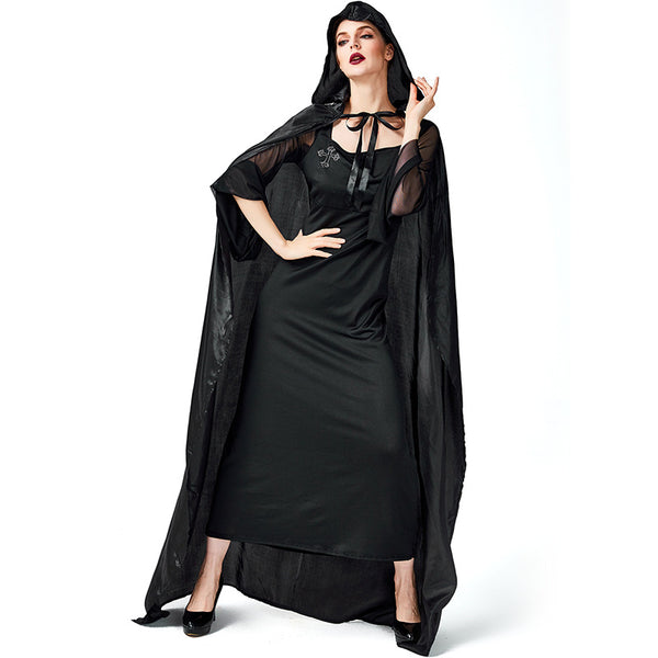 Women Vampire Scary Black Witch Cosplay Costume Dress For Halloween Party Performance